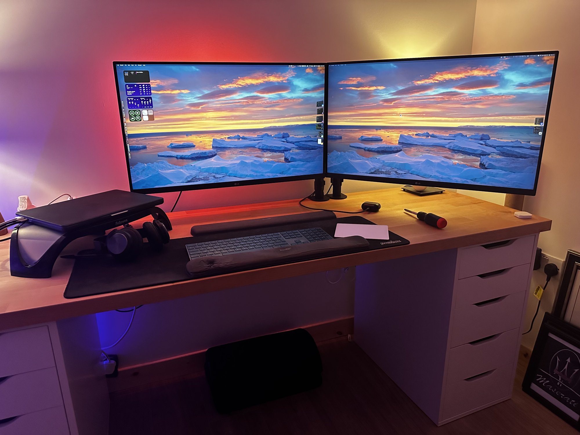 I'm looking to re-think my working from home workspace, and I've been on the fence about buying a larger monitor, or running two smaller monitors.