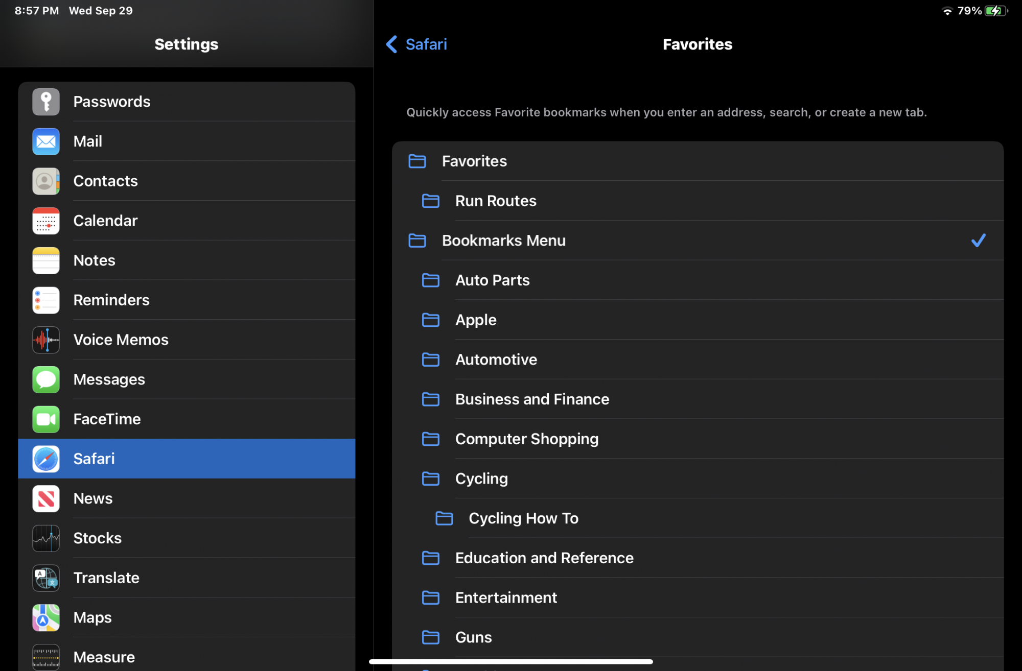 I'm at my wits end. My bookmarks icon seems to missing the new Mini 6. My iPad Pro 12.9 has one and so does my iPhone Pro 13. The only way to access my bookmarks is from this "sidecar" icon on the left upper toolbar that takes up 1/3 of the screen and requires several gestures to open and close.