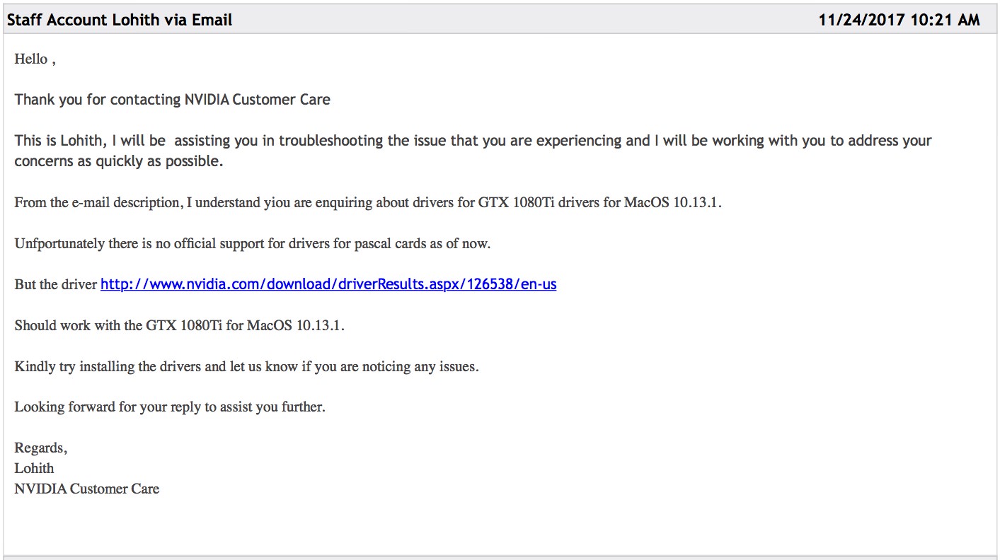 - Graphics driver updated for macOS High Sierra 10.13.1 (17B48)