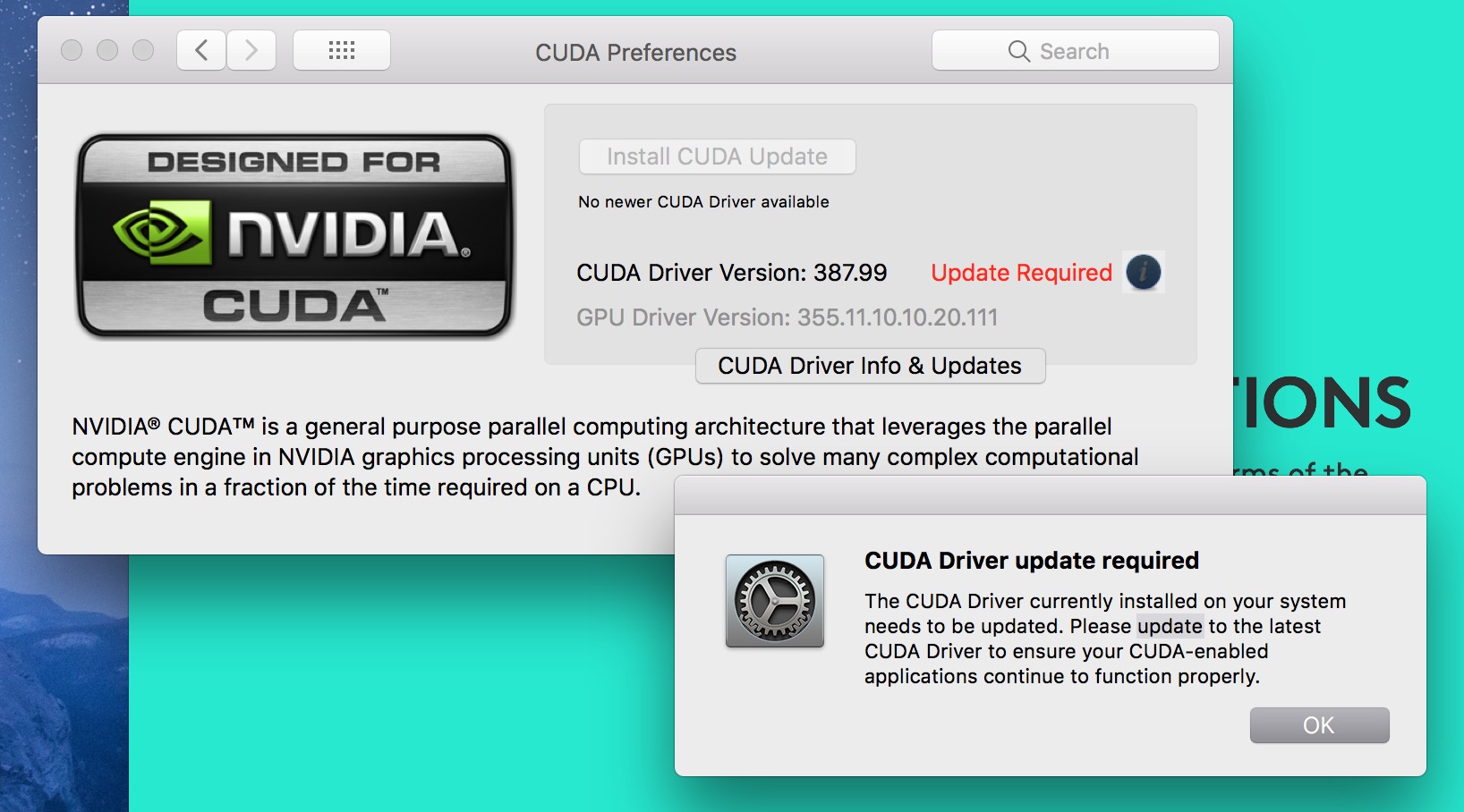 [doublepost=1513759640][/doublepost]also I installed CUDA Driver Version: 387.99 released 12/8. restarted my comp and got a message saying update required but no update available :/