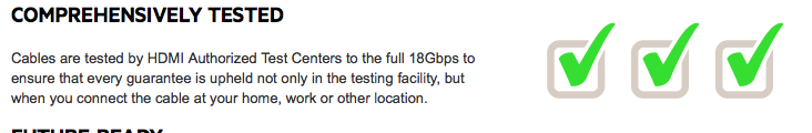 Just bought two HDMI cables from Monoprice....neither a any good....This has been going on far too long..the Chinese Mfg do not believe in quality control...its bad for new business....the price of retuning these two would exceed the price of postage to do so....I get nothing out of one and no audio out of the other.