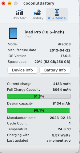 I have been there. This part for sure is aggravating. Apple knows very well, that battery at 80% or 81% is as shot and bad as battery at 79%, so they should perform replacements when things are basically rounding error, especially for people with Apple Care+.Just to add my experience. After random shutdowns/temperature warnings on my iPad Pro 10.5” 2017, I checked the battery capacity on the Coconut app which showed 71 per cent, over 2000 cycles. Took it into the Apple Store and it came up as 81 per cent capacity which falls short of the 80 per cent needed to trigger a replacement iPad for £99. Was advised to recheck capacity in a few weeks/months to confirm battery degradation has reached the cut off point. Think I will go for the replacement iPad as it will get me another couple of years or I guess I could sell it as a near new Apple refurbished unit.