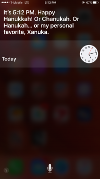 "It's 4:47 PM. Happy Hanukkah! Wishing you lots of latkes!"