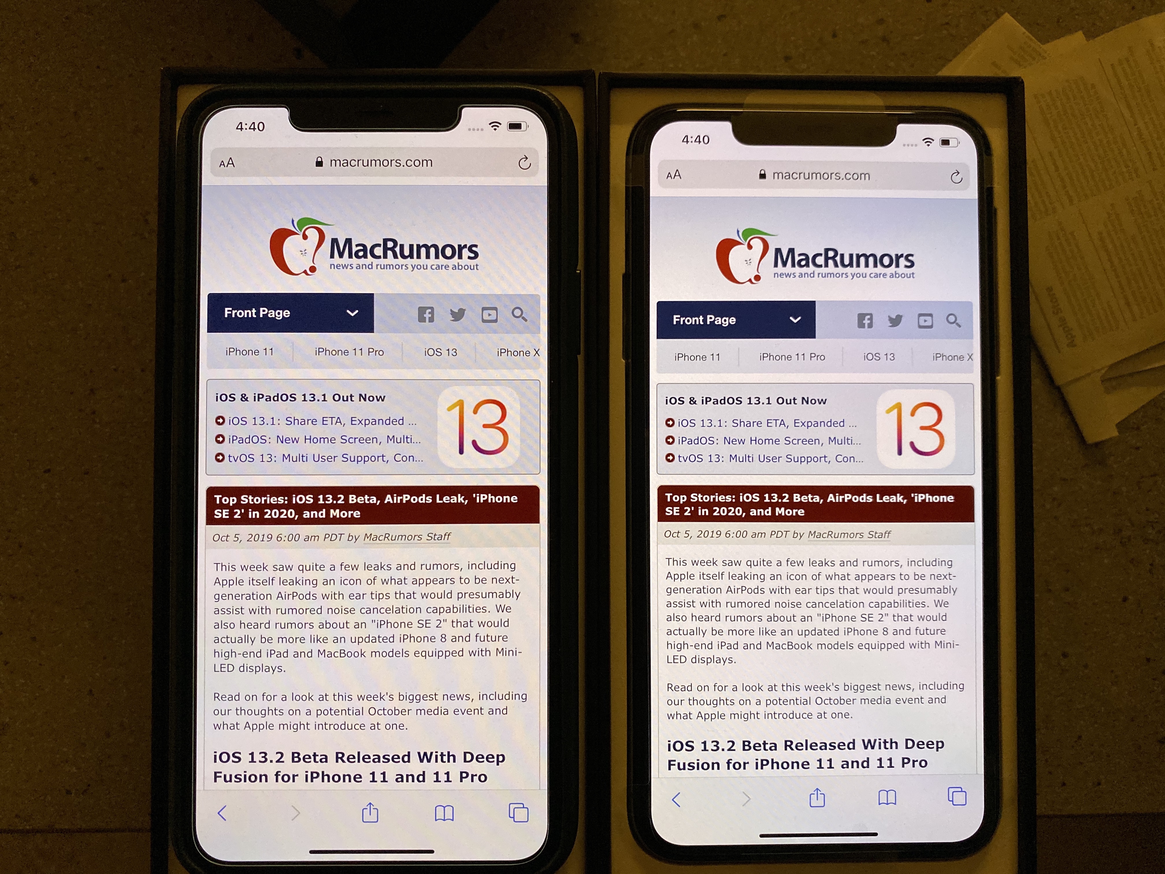 I'm so sick and tired of these Apple store employees who can never see the difference between any two screens you show them. My first 11 Pro had weak contrast and a slight green cast to the display. Genius said he couldn't see the difference even though seven other people I showed could. My express replacement has much better contrast but is more yellow. Showed it to a Genius today, even compared it directly beside a display unit which had perfect whites and even under that perfect store lighting I could still see mine had more yellow and he said he couldn't. I immediately saw that the store unit was what I wanted mine to look like and he saw no difference. Like, I understand that these differences are not as drastic as night shift on versus night shift off or something crazy like that, but I'm not blind. If you look closely you can see they are different.