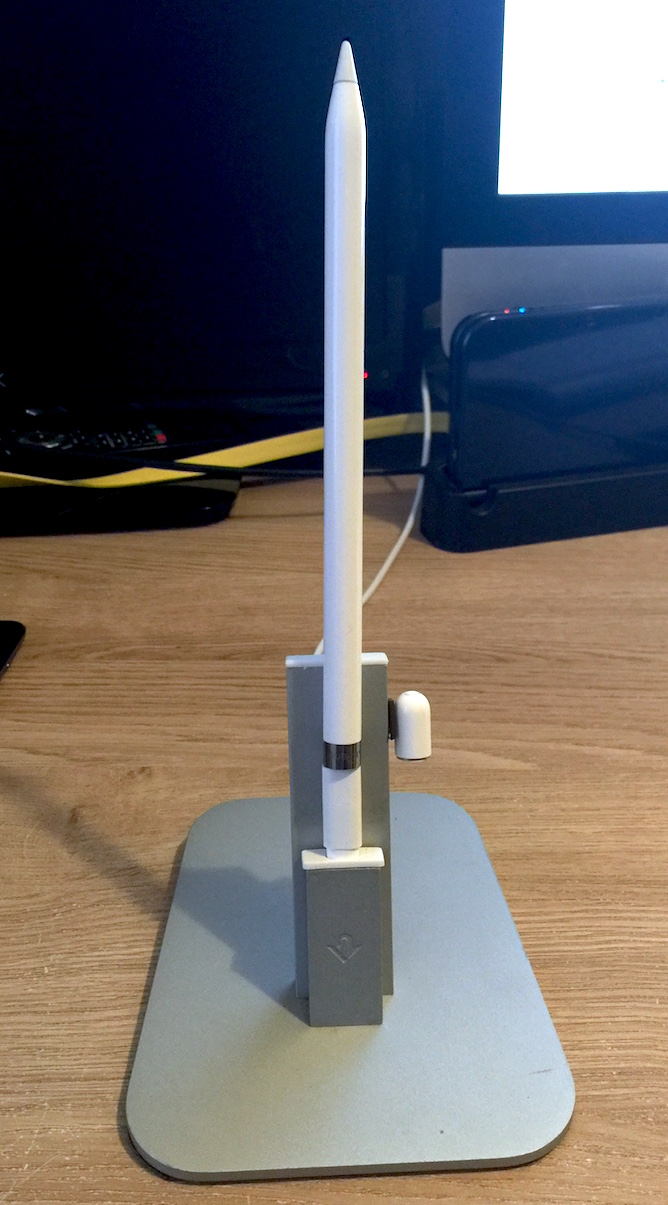 Or there's the Quarter from SteelConnect which slots into the Lightning port and you can slide the Pencil in there to stow it away.