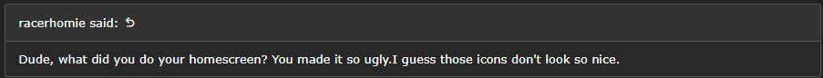 I know. The Dark Mode non Apple icons don’t look as nice as the light mode ones. Plus your Wallpaper looks dull. I think you should pick a bit brighter color for your Homescreen WallpaperWell, you know what they say about opinions....homie.😏 Really don't know what you are on about....homie, they are just the iOS stock icons.