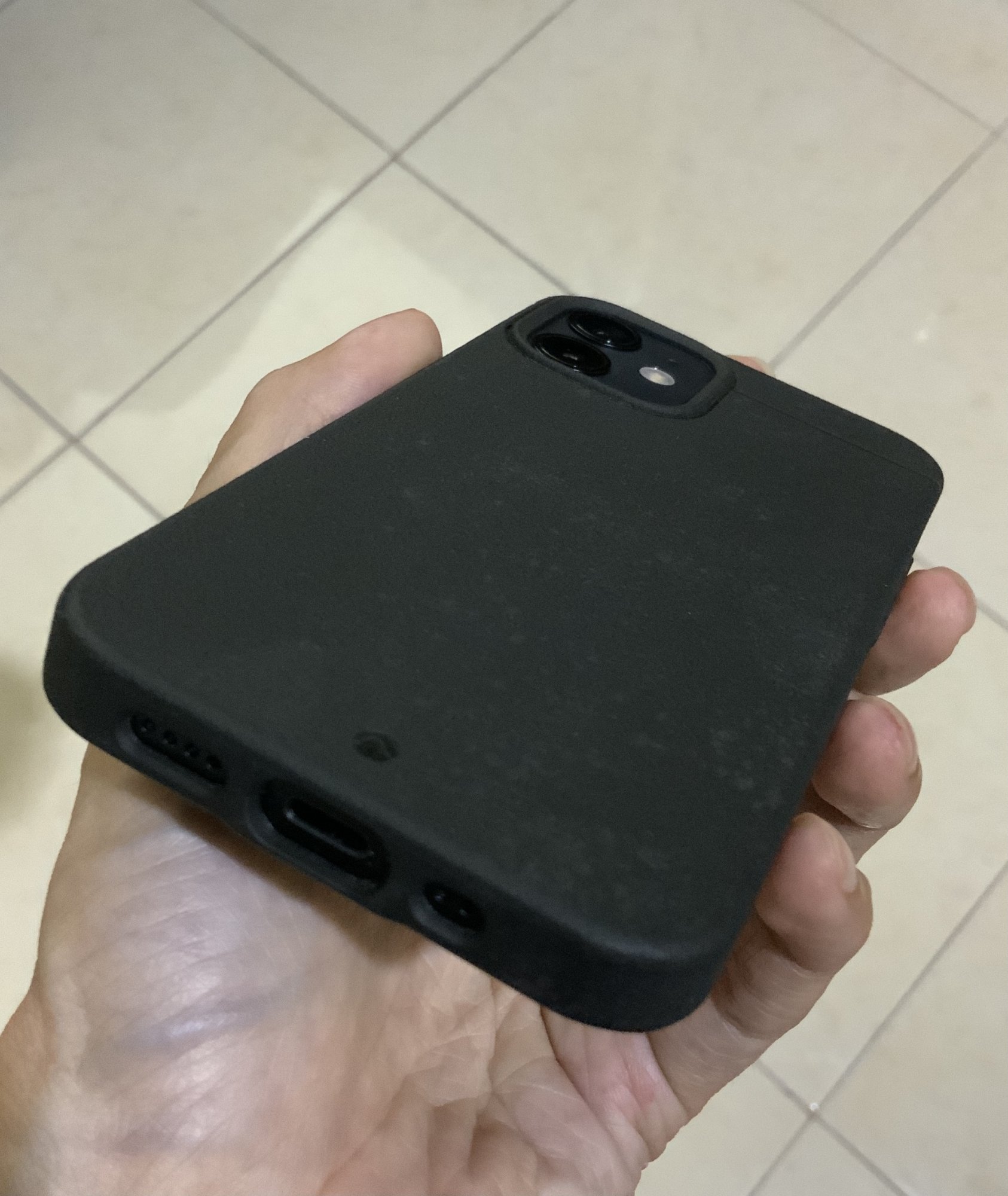 I agree, it sticks less well in dry hands than a silicone would. OTOH, it's not a lint magnet like the silicone caseI have to agree with this, I always put on the sheath to "give it another shot" but always end up going back to the apple silicone. I don't think it works well with dry hands and mine are always dry now with it being cold and all the hand washing