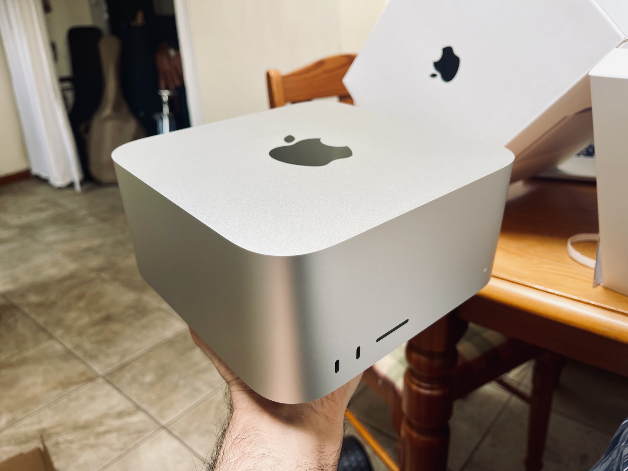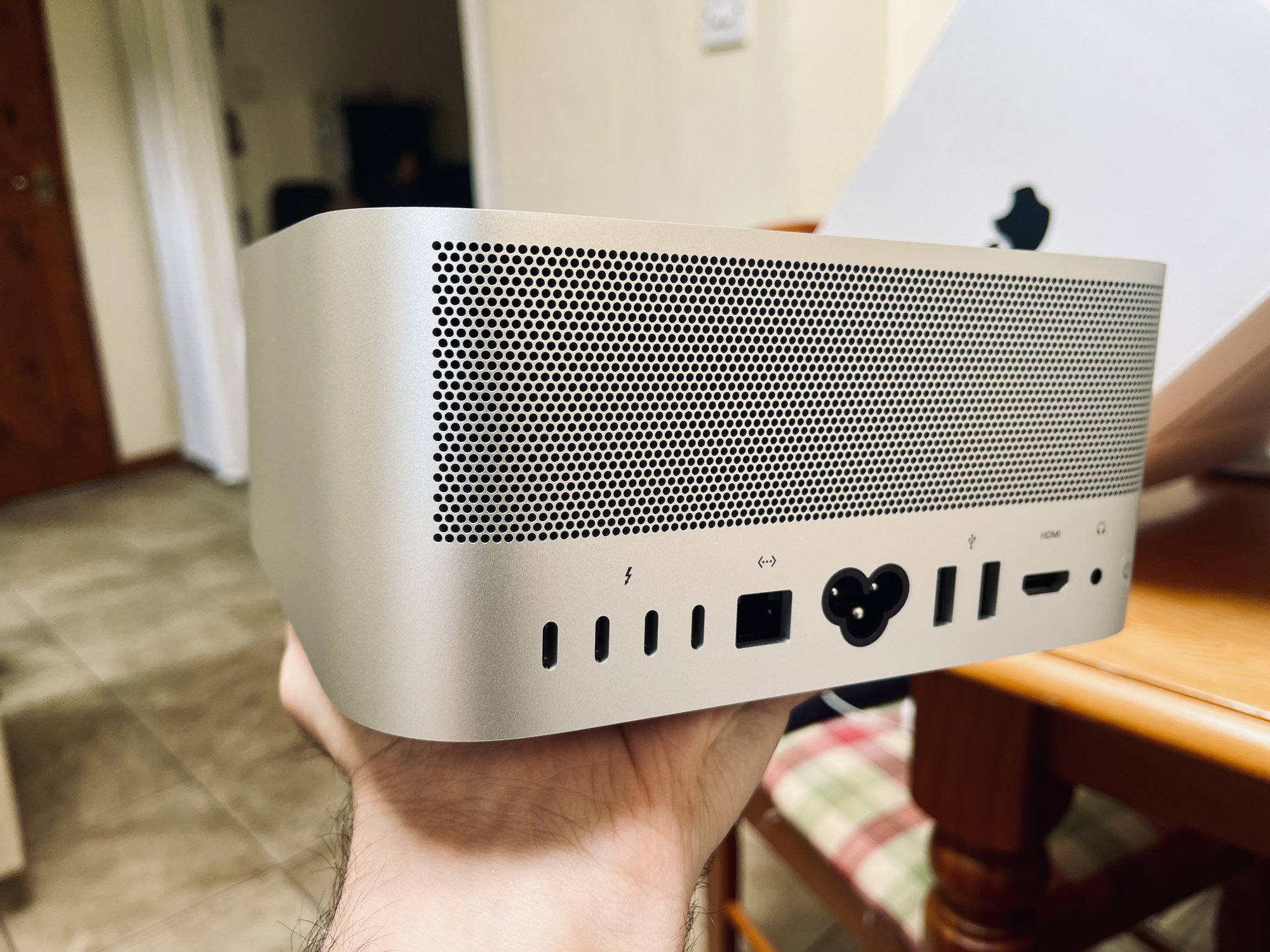 is a bit of a big featureless lump - I've never had an Intel Mac Mini and didn't realise how much the footprint had increased from the G4 Mini until I put the G4 and Studio side by side. Still, the G4 relied on a whacking great external power brick...