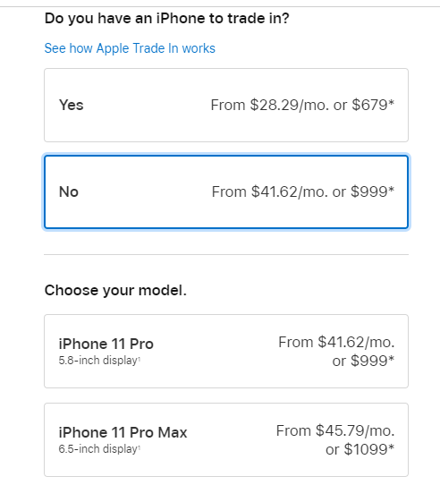 Go to the iPhone page on Apple’s website and pricing on every model is quoted applying the highest possible trade-in value. But how many people have trade-ins and are going to get the highest possible value on their trade-in? No other product on Apple’s website is featured that way. To me this is as bad as department stores having a sale sign on everything thinking the only way they’ll get people into the store to buy things is if they’re 30 or 50 percent off. Just give me the real price of the product.