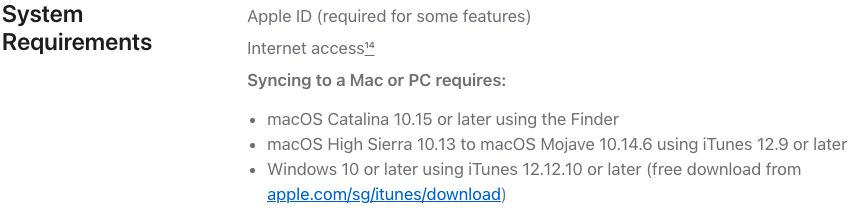 It's somewhat ironic that the iPhone 15 minimum system requirements are only High Sierra 10.13 (6 years old and no longer supported by Apple with updates at all!!) or Windows 10 (a nearly 10 year old operating system).