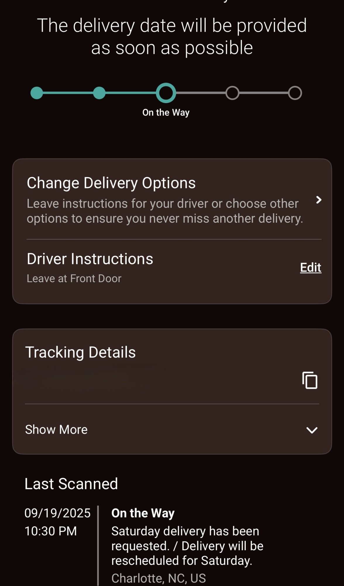 Shows will be delivered by 7pm, BUT it was never put on the truck for delivery, Last scan was at 5:23am when it arrived.