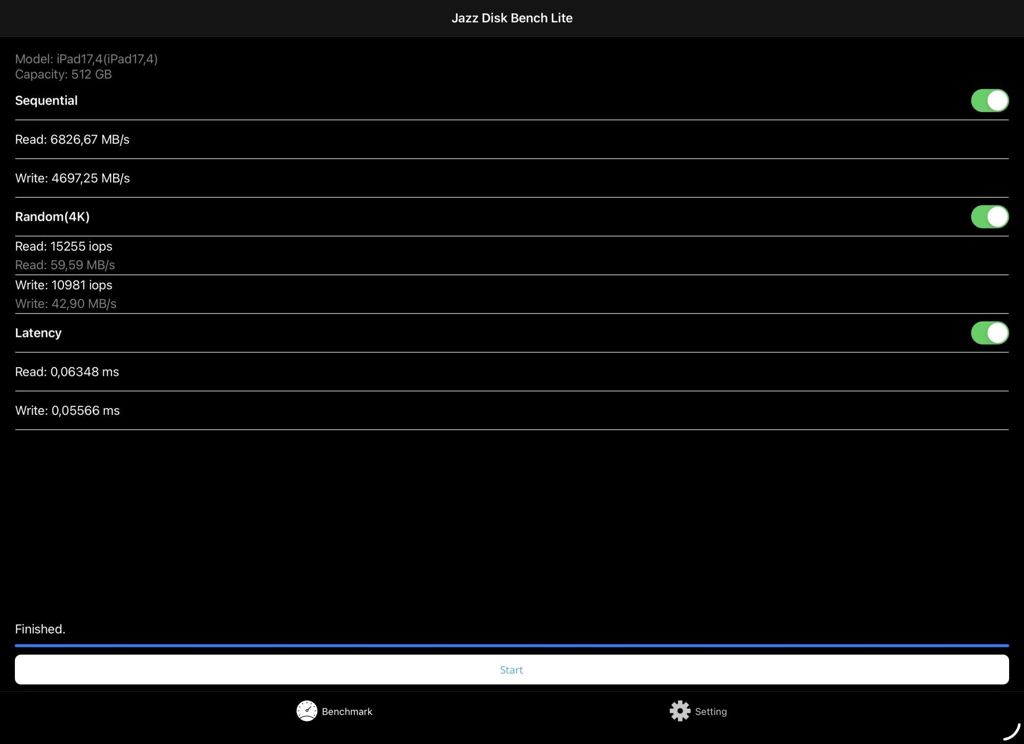 This is my ipad pro 13 512GB, arrived yesterday.Can you please run Jazz Disk Bench and share your results? We’re trying to determine if the slow write speed experienced by one of the members here was an isolated incident or if it occurs with every 512GB version. Thanks!
