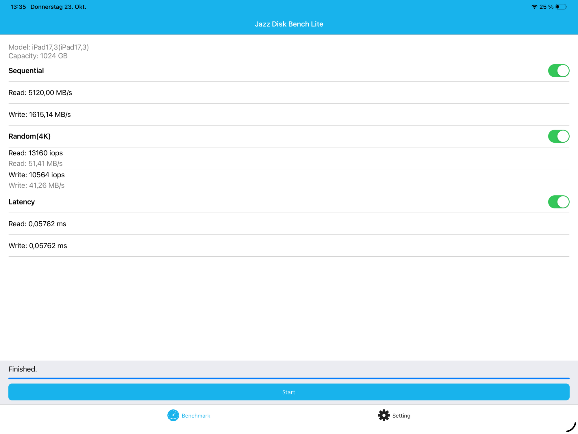 Another tool you can try is Antutu Benchmark. Run their disk speed test only and see what you get.Same with my 1TB model running on 26.1 Beta 4. How reliable is the benchmark software?