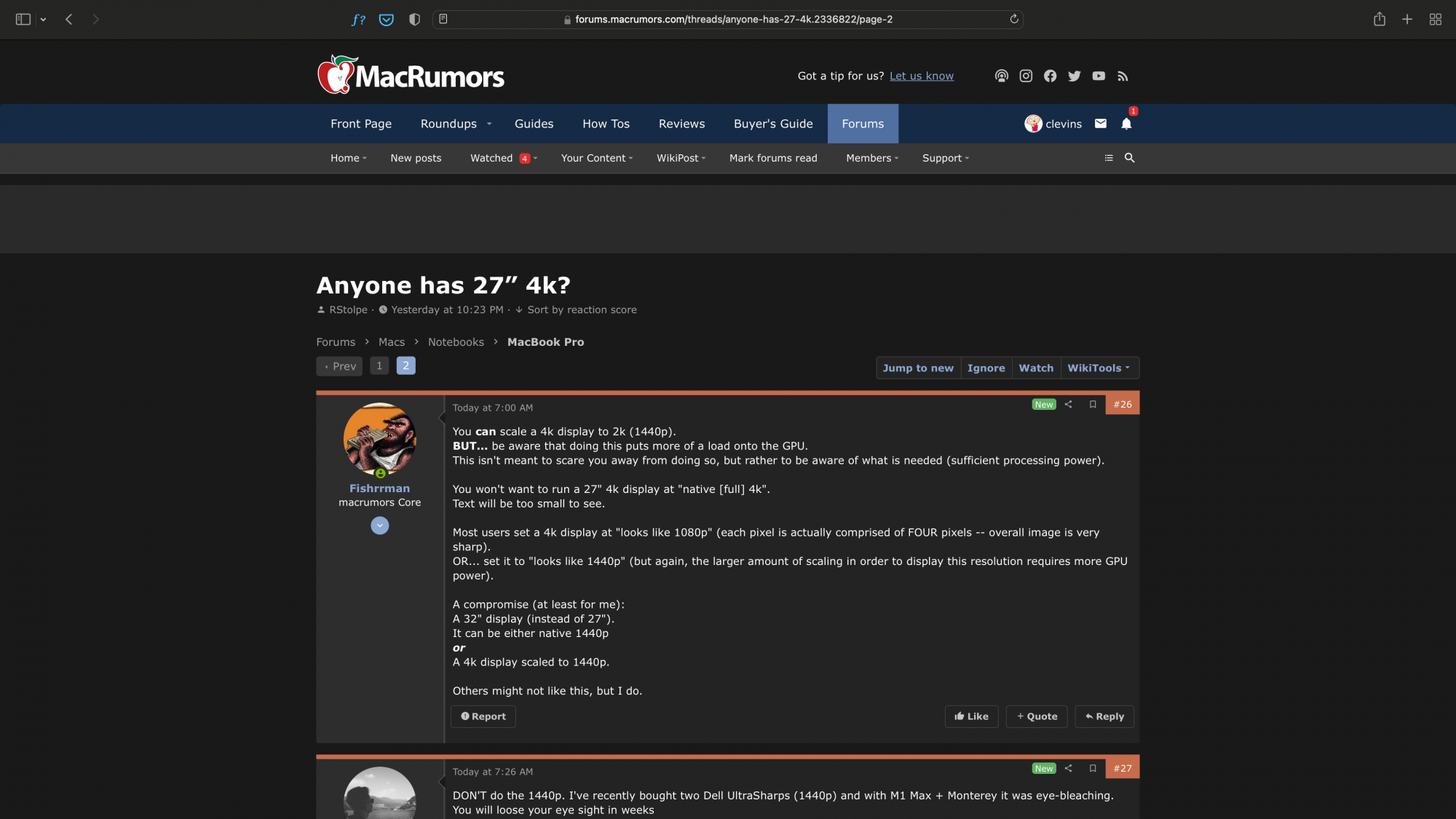 Great monitors but scaling is a consideration. Not enough screen realestate for my liking at which is effectively nice looking 1080p. I think QHD is better for the 27" form factor. If I got a 4k again I'd make sure I got a 32" and up.