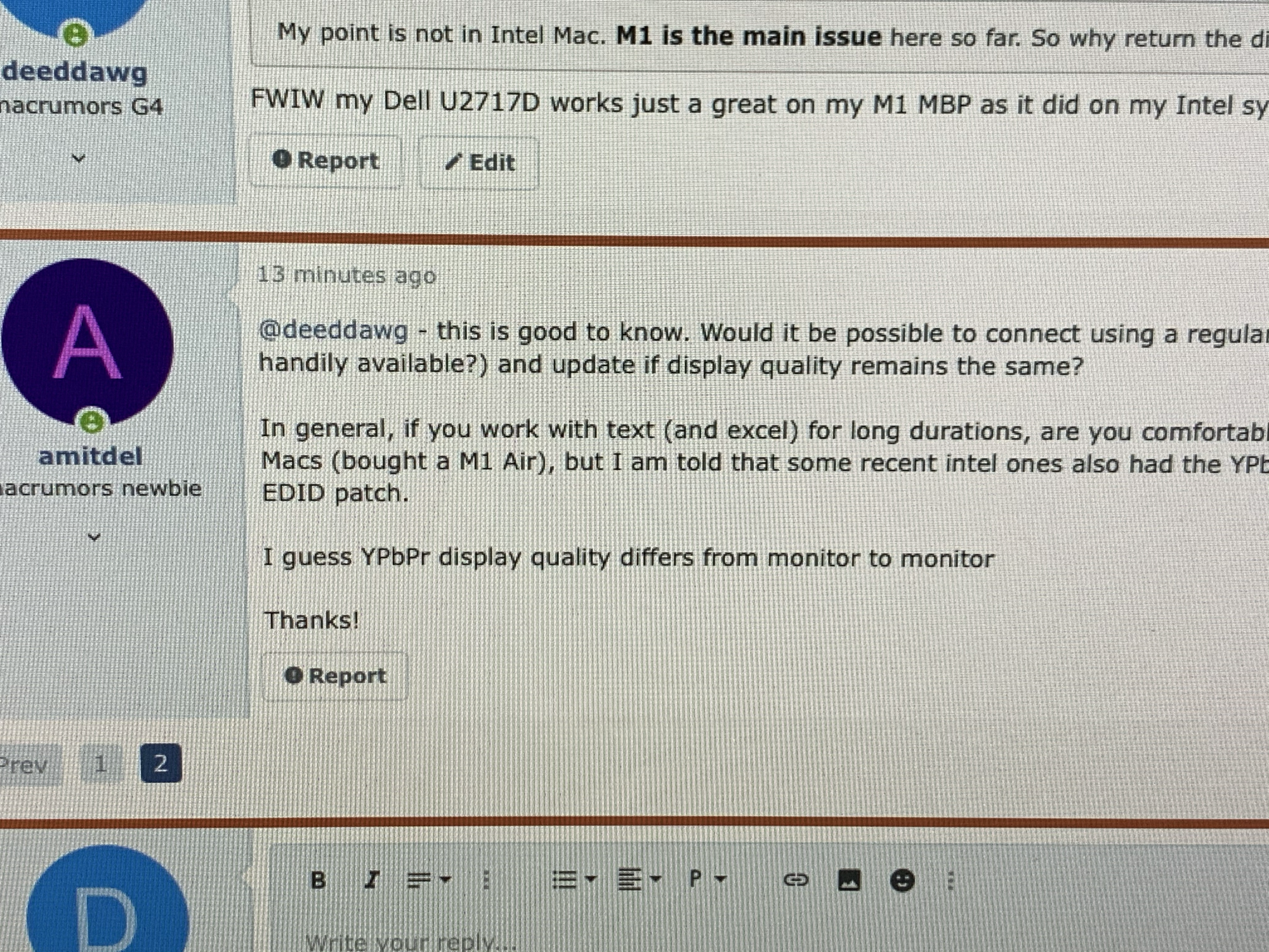 In general, if you work with text (and excel) for long durations, are you comfortable with the overall experience? I am new to Macs (bought a M1 Air), but I am told that some recent intel ones also had the YPbPr issue, which was solvable through a EDID patch.