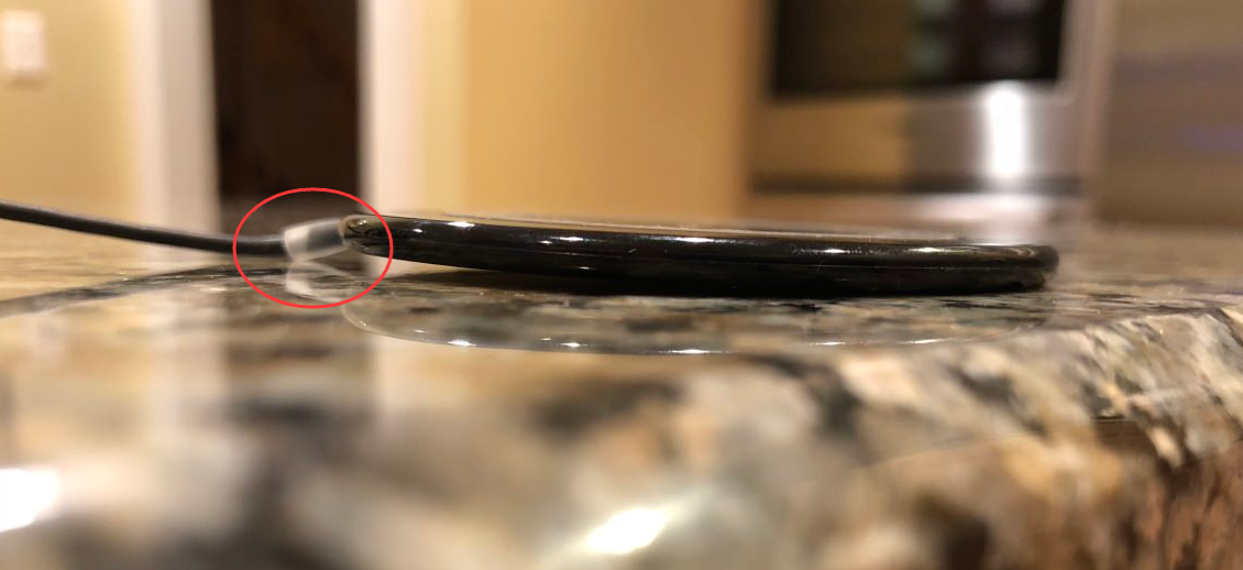 1. The connection point of the USB wire to the housing of the charging disc is angled upwards and does not allow the disc to lie perfectly flat. See photo above. Is this the way it is designed? Or is this something I can correct so that the disc lies flat? Right now it is lifting up because the wire and the plastic sheath is in the way.