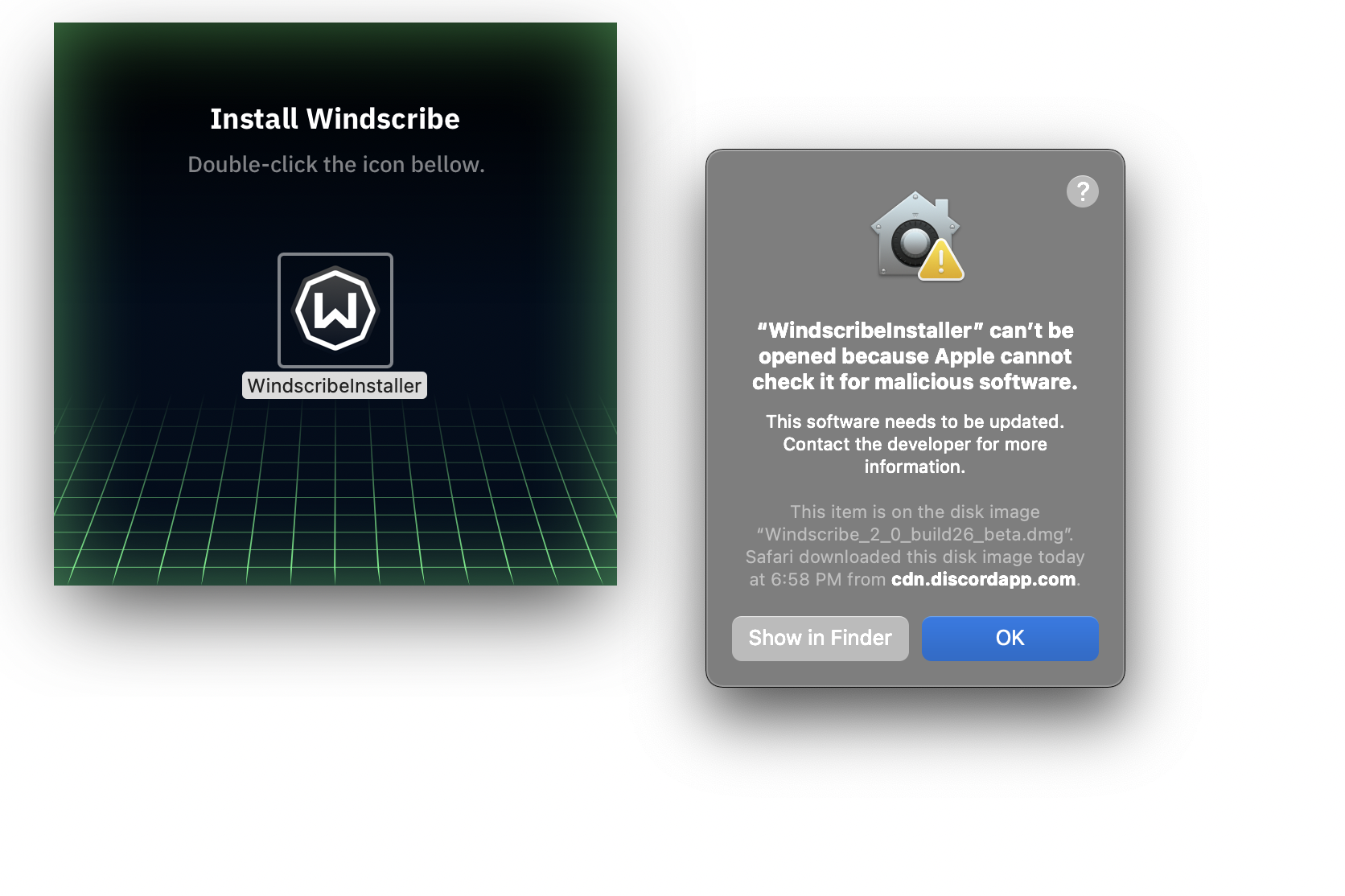 I used it on my i3 updated to Big Sur just fone but now i'm getting this pop up. So anyone else having issues installing Windscribe vpn ? Thanks.