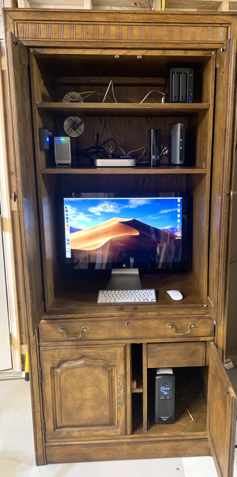 I am aiming for the same, but with an ikea cabinet!Just finished my new data closet in my basement. Bought an old entertainment cabinet from our local Habitat for Humanity ReStore. I didn't have to make any significant modifications for it, just some new holes in the back for cables and the two fans I installed. Rheostat for fans is on left side. At half speed I can barely hear them.