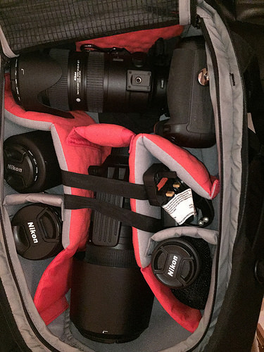 Said pack must have room for a 15" laptop, DSLR, 24-70 2.8, 70-200 2.8 (well 80-200 for now), 50 1.8, 3 speed lights, some miscellaneous cables, batteries, and chargers. Those two big lenses are the issue at the moment. Getting them both into the current pack is not working so well. I could stand to give up the 3 way access of the evolution.