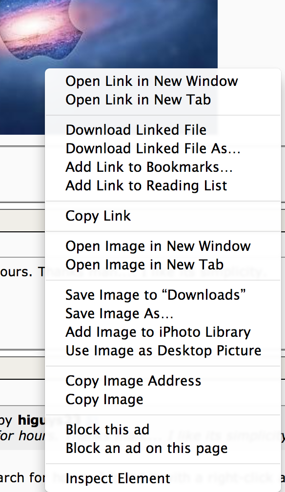 ECUpirate44 macrumors 603 Mar 22, 2010 5,750 8 NC May 2, 2013 #5 GGJstudios said: There's no need to search for hours. I found it with a right-click and a click in less than 4 seconds. View attachment 409150Search by Image Inside Search Google apple logo in galaxy HD wallpapers Apple Wallpapers | HD Wallpaper Click to expand... How'd you get that option?