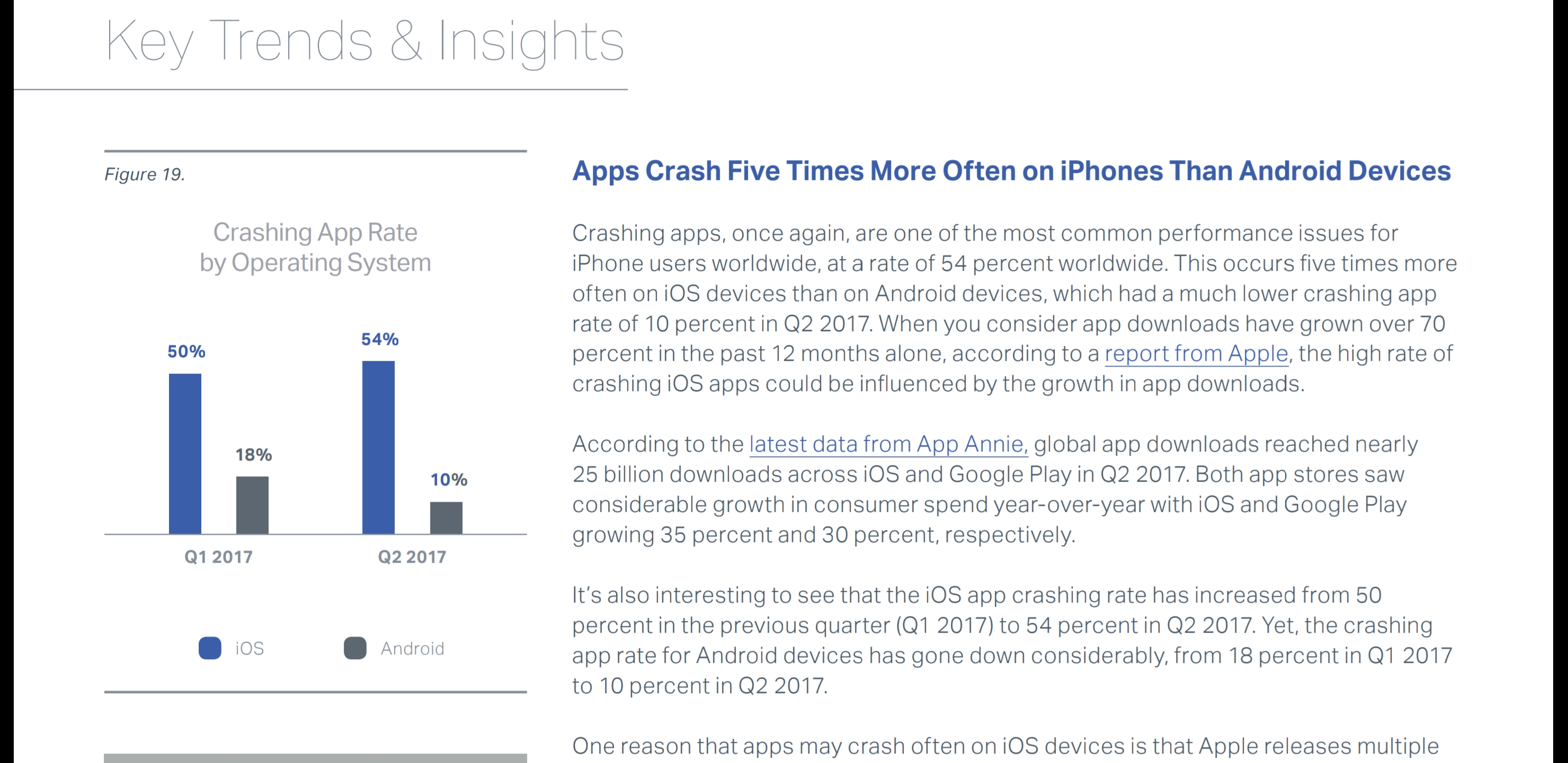I wonder if they're counting instances where iOS kills the app to free memory. If so, that's expected behavior, not a crash. I also wonder if that may have something to do with why their