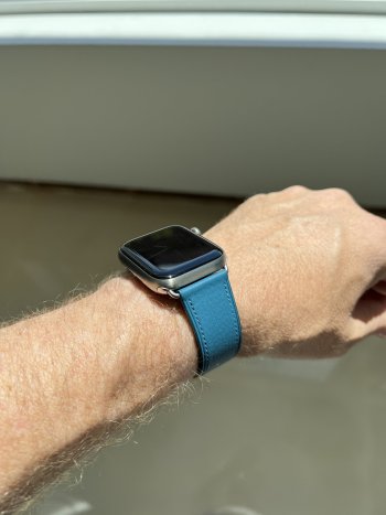 I took pictures with several straps when I got my S7 natural Ti, but basically I use my stainless steel link whenever I have to dress formal, Nike sport loops for daily wear in the summer, and a black (actually black, not midnight blue) leather link for daily wear when it's not so hot.