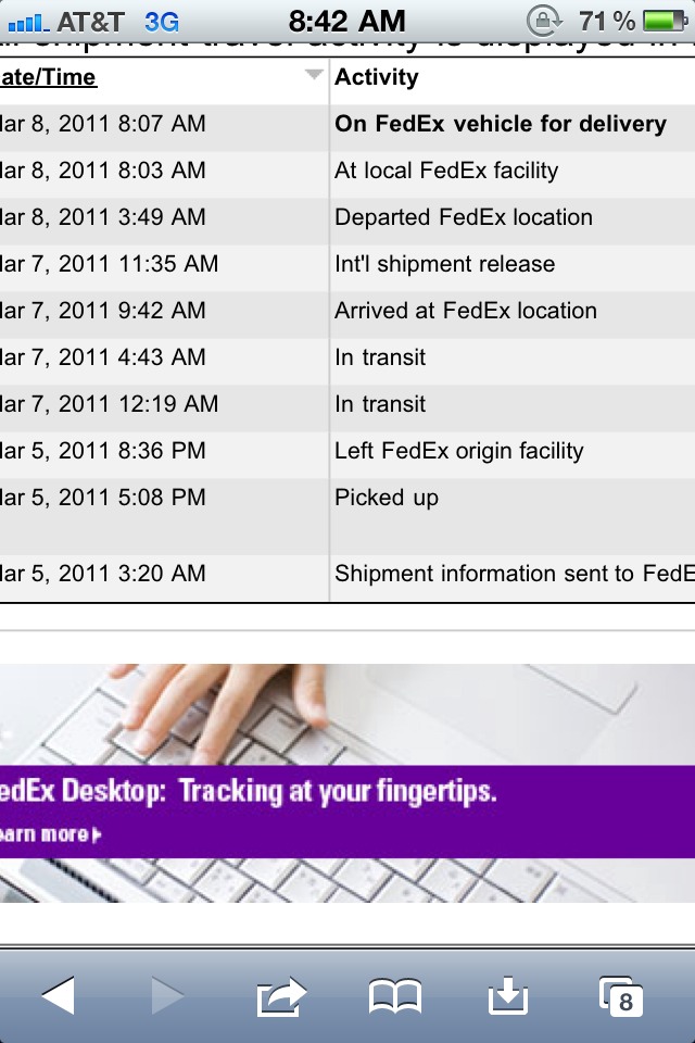- In Transit to Customer - Shipment on Schedule - Date 11 Mar 2011 (???)