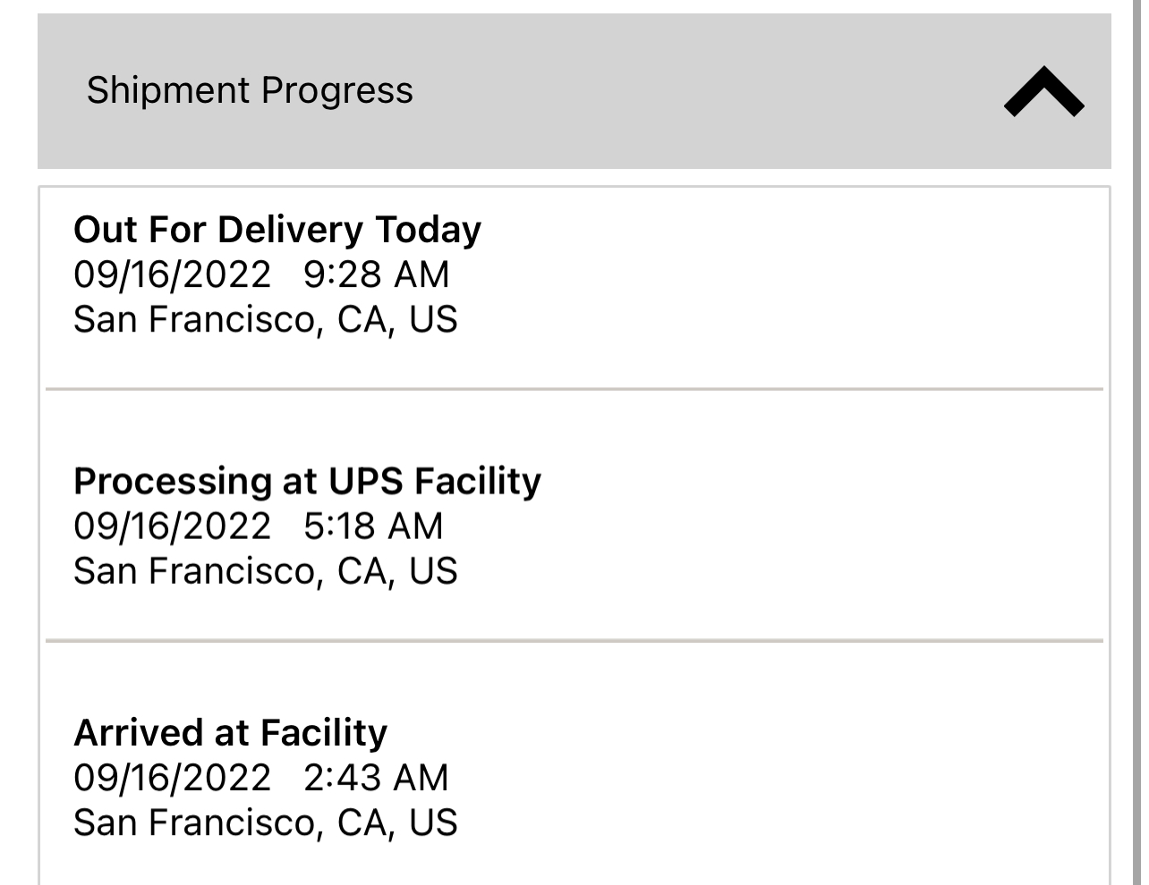 | 09/16/2022 2:43 A.M. | On the Way San Francisco, CA, United States |