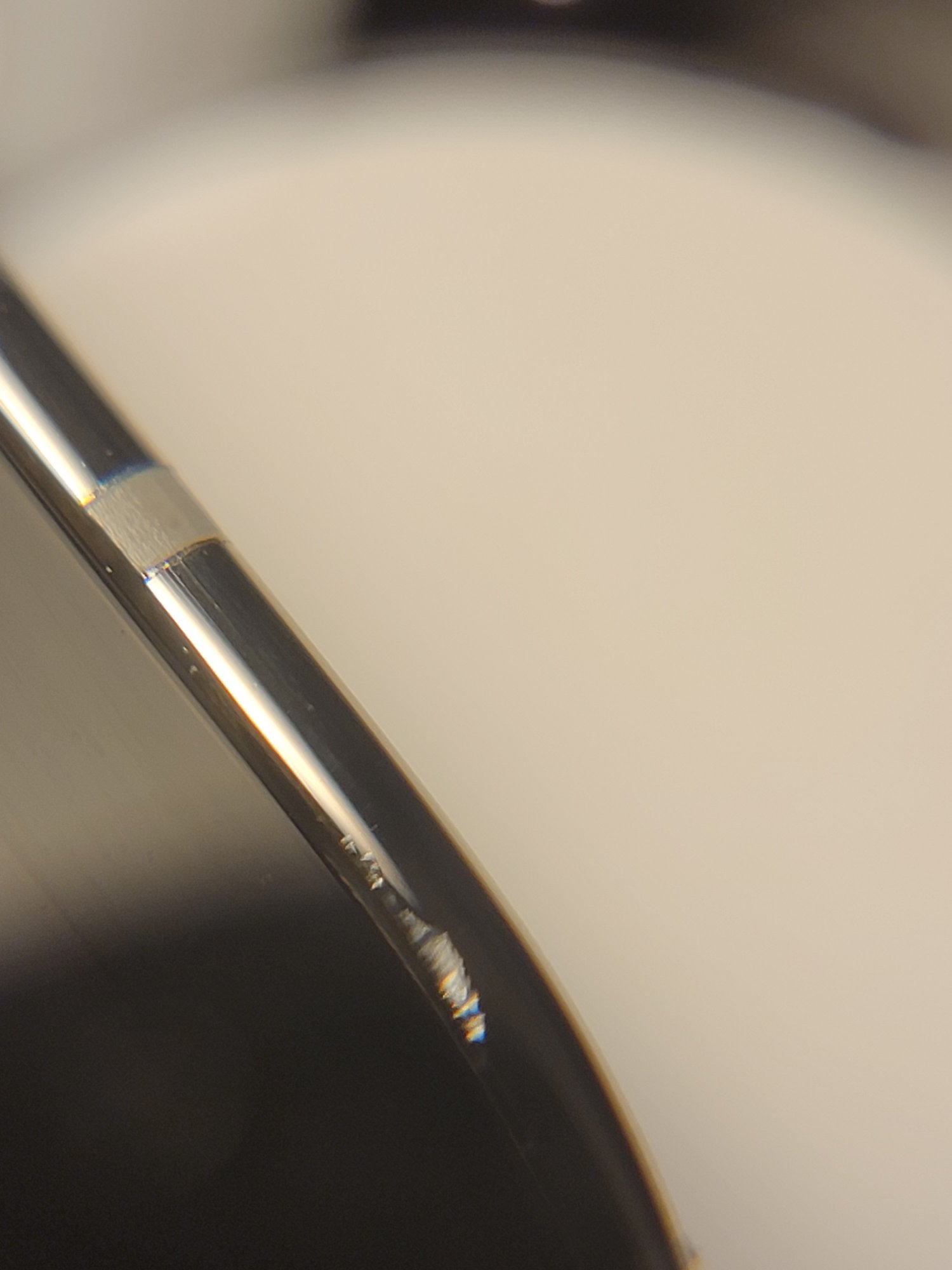 Anyone else have chips or damages on their stainless steel edges? I have one I can feel quite prominently with my fingernail just below the antenna line and above the silence switch.