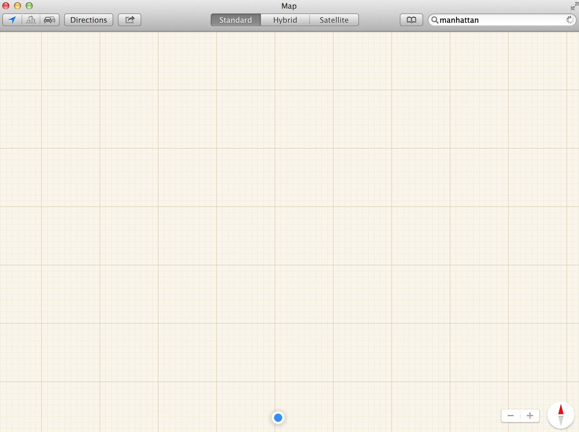 Do you think there's anyway the Maps app could use a different maps API? like how you've done with your widgets? or do you think that's too complicated? Wondering if this happens on Yosemite or if that uses a different method.I think this was some kind of gradual server rollout, because now the Maps app is broken for me too, in the same way as OP.