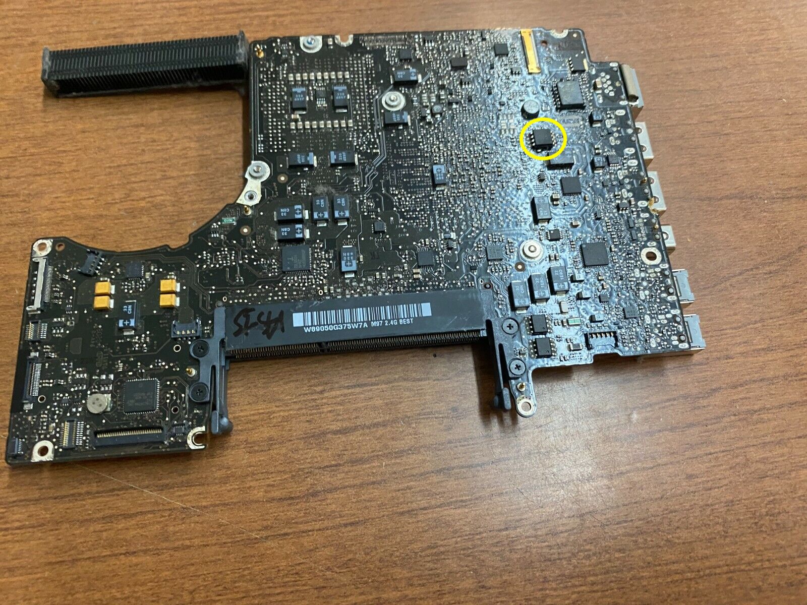 I have identified on the logic board what it looks like a ROM chip which is spotted in the picture I have attached. It reads the following code: MX12G2523205DM2I.