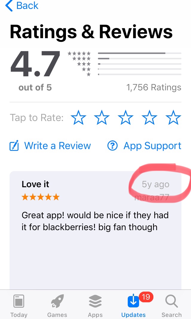 "For example Evernote, the first four reviews are older than three years old," said MacRumors forum member vahdyx, who lives in Colorado. "One of the reviews were from when Obama was a new president."