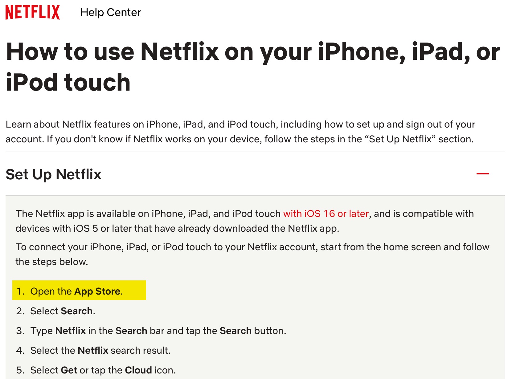 Really? Could you point us out a link somewhere else than https://apps.apple.com/us/app/netflix/id363590051 where it can be downloaded? Thanks!