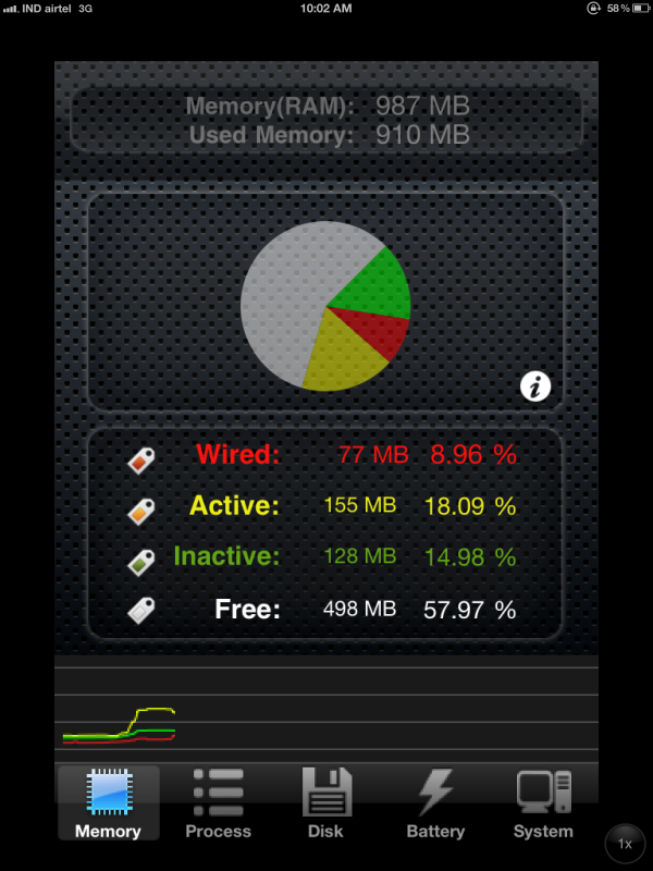 You're looking for something utterly pointless - the way RAM is used on the iPad is different from the desktop, so it should be nearly full almost all of the time. You'd be looking at numbers that look really bad but actually just indicate that everything's running normally.