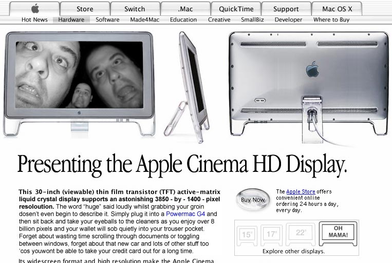 Look at all that un used real estate on the back of the cinema displays. Putting the processor and drives on the back would make a very small footprint computer!