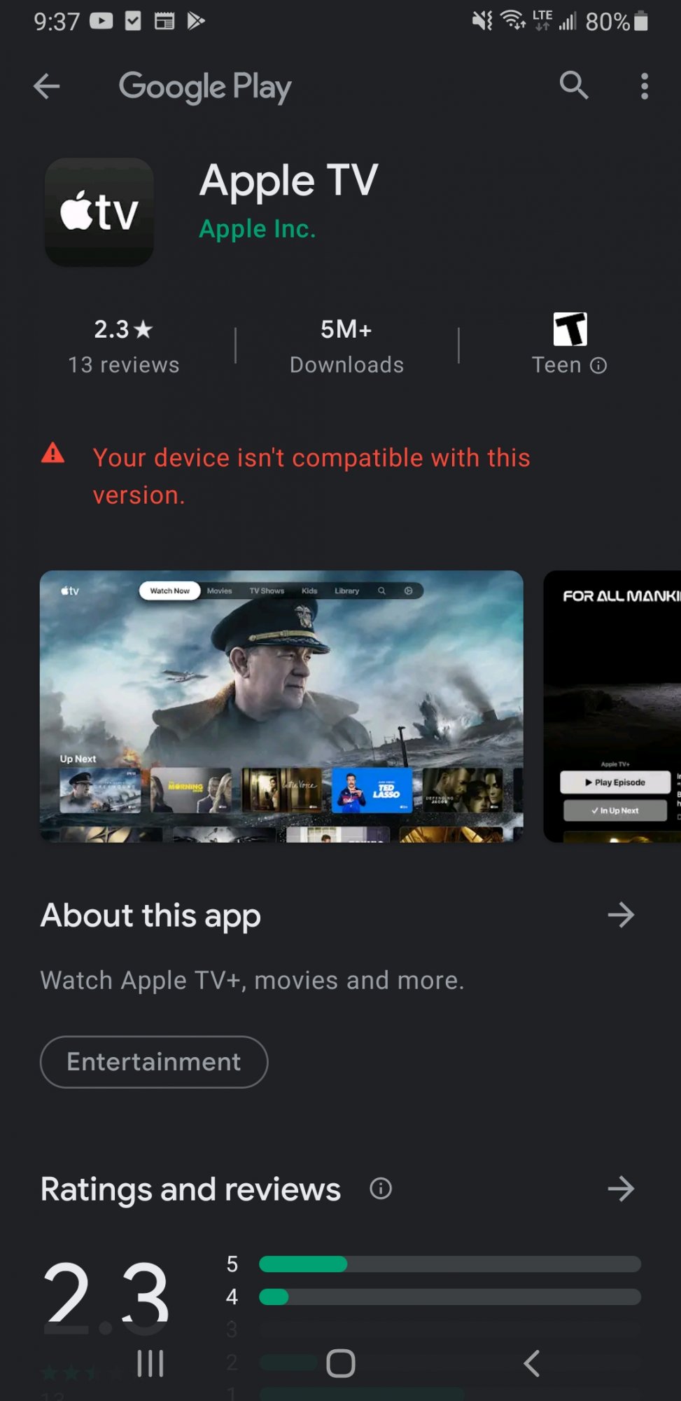 is there a Apple TV app for android? If not, why don’t they develop it?