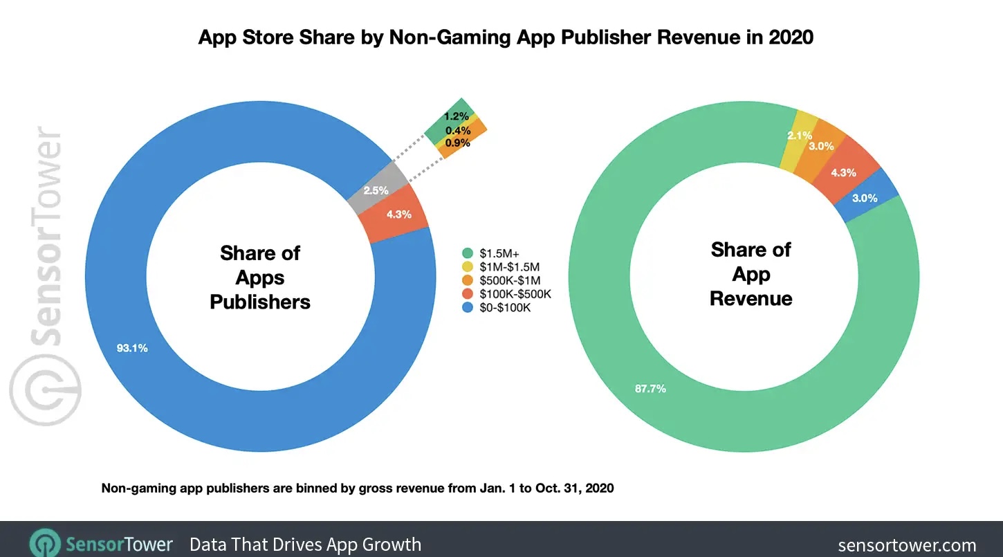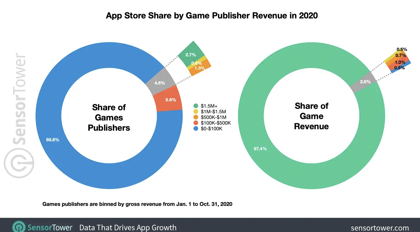 Developers make money on Ad's. There are games that have IAP, and the 30% certainly applies to them. But, there are ways to ensure you never pay apple anything more than the $99 yearly fee and whatever it cost to get a mac to develop on. Even with EPIC's rule of no charge for the first $1 million sales. Still acknowledges that there is a cost to provide this service. They may have other ways to make up the difference. They would be foolish not to have other ways to make it up. Or they are getting subsidized by other means. Either way, it's not for you or anyone else to say what Apple should or should not be making or charging for something they created. The market decides that. People no longer shopping on the store decides that.