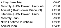 Now I 'need' to buy the € 89,99 'lifetime Nitro'. And because I'm a buyer of Raw Power I ought to be glad I'm getting a € 10,00 discount.