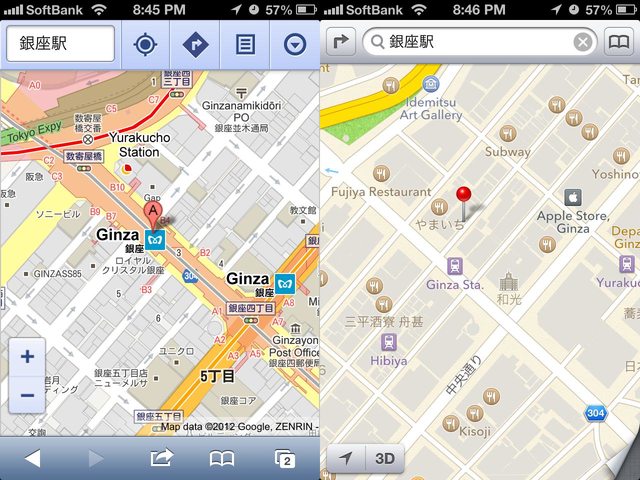 Some of these are fixable by crowdsourcing, but some of the really important onesstation maps, exits and transitare not. And note that I'm not trying to pick a horrible location; this is right by Apple's flagship store for Japan.