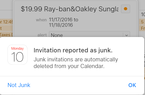 Yes but you are missing the point. I followed the steps to report it as junk online, then it appeared as declined in my Calendar app. So then I deleted it. It didn't have the pop up this time saying that the sender would be notified.