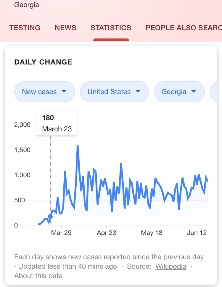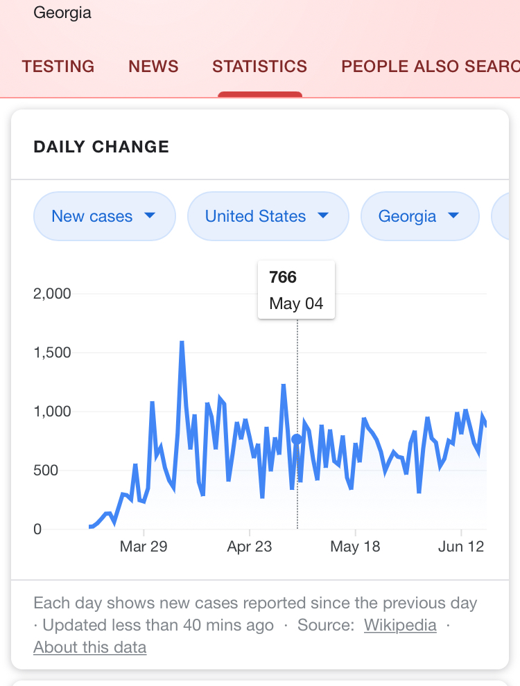 They all said Georgia was crazy for re-opening its economy when they did, but for 6 weeks, they continued to see declines in infections, even as they increased testing, which proves that there’s no correlation between lockdowns and infection rates, but rather, individual behavior and following common sense guidelines.