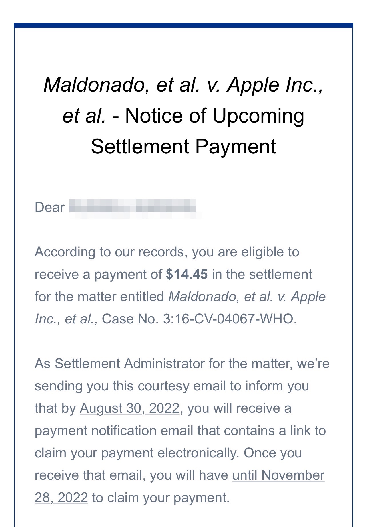 So - maybe there is a different thread - but I got an email yesterday - offering me payment for this case. Anyone else get it?