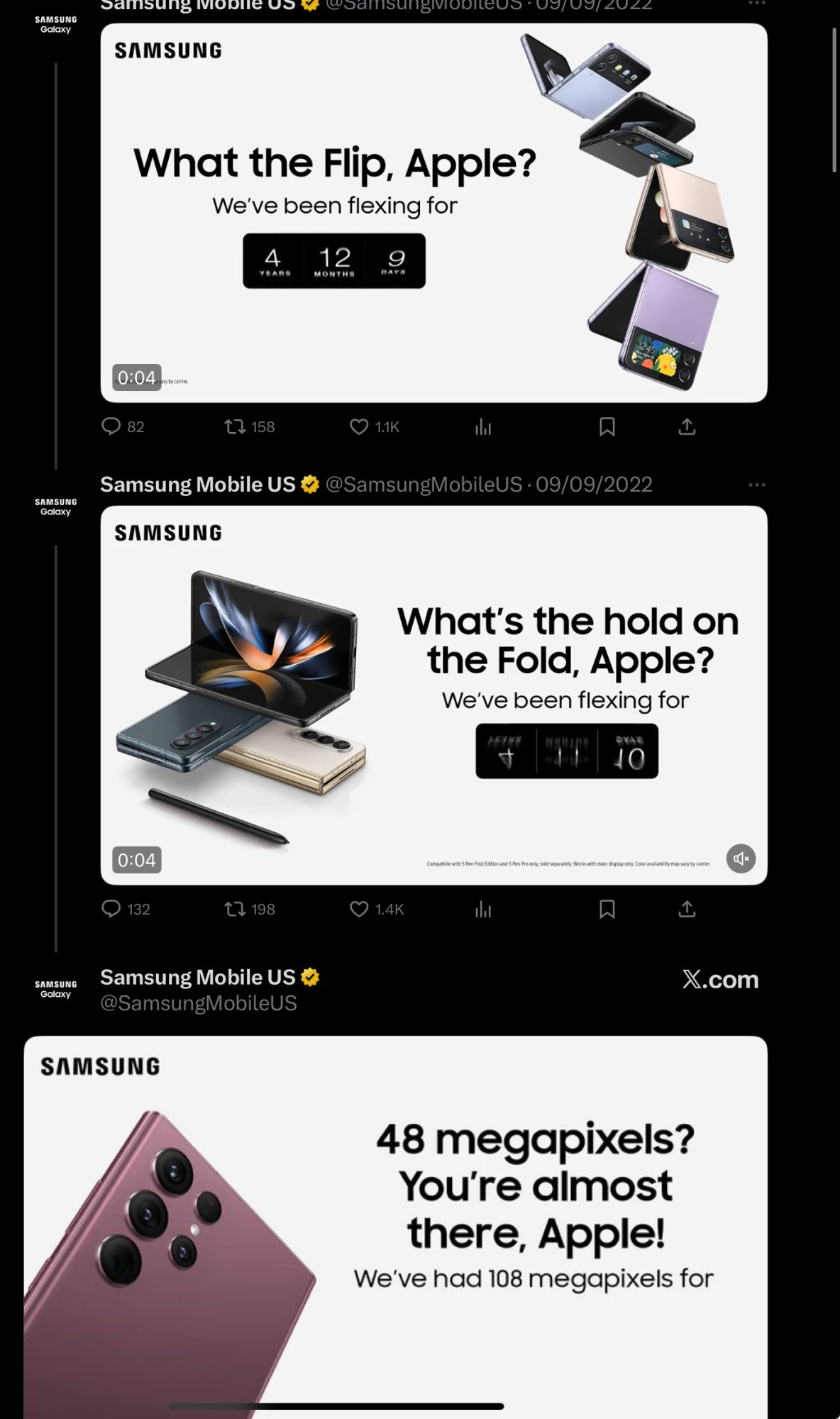 The message is “we have impressive specs, Apple has cute aesthetics” — however, while the audience can compare the aesthetics, they can’t compare the specs.