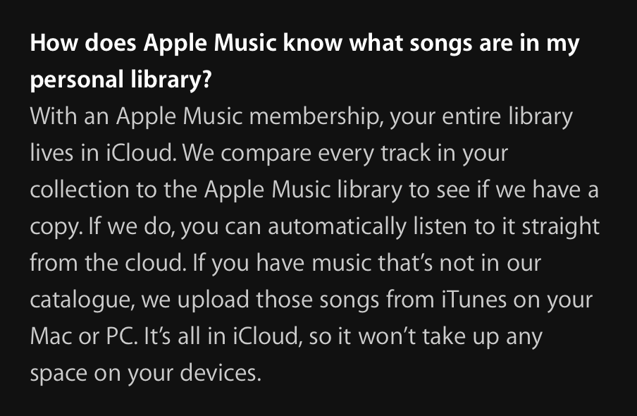 From Apple's website:Since I haven't really streamed or used iTunes Match, can someone explain how Apple Music is likely to handle our existing iTunes libraries? I'm not sure I want to pay for Apple Music and more iCloud storage.