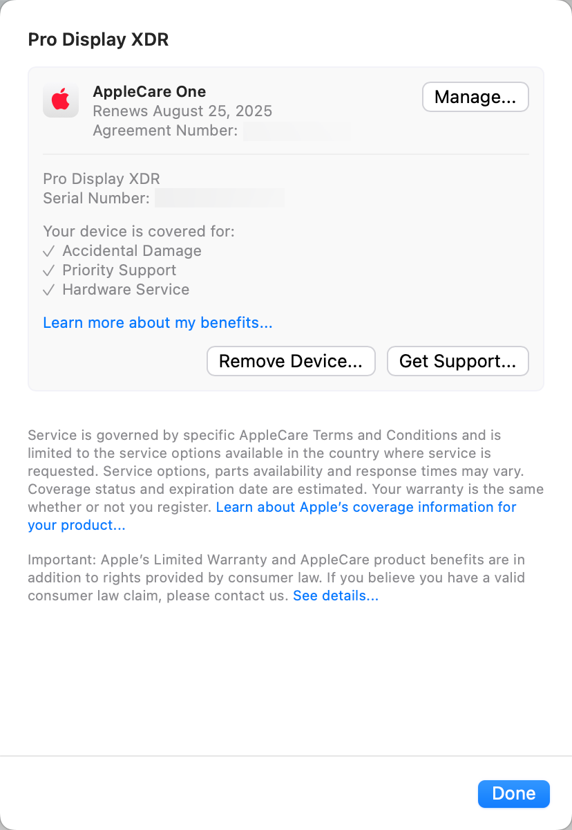I have been trying for three weeks to add my Pro Display XDR to my AppleCare One plan and no one from Apple could figure out why it wasn't showing up in my list of devices to add to the plan. I opened several cases with Apple and they gave me at least half a dozen reasons why it wasn't working, and I did exactly what they claimed to be as the solution only to see it continue to fail. When I read your post, I updated to the latest version of Sequoia and it immediately showed up in the list to add. For the life of me I cannot imagine why none of the Apple engineers suggested this. Amazing fail by Apple!!!