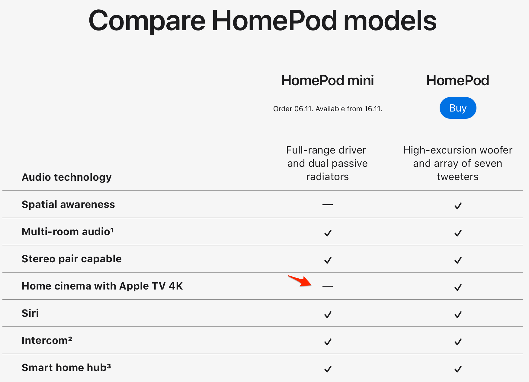 What they're not doing in that comparison is showing the features the mini has but that the older HomePod does not.Intercom on homepod,I see