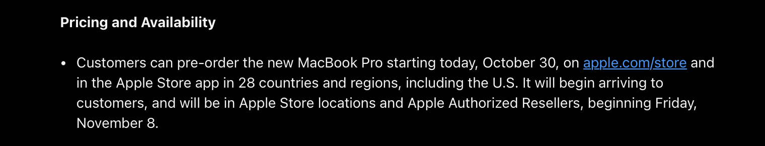 Like their predecessors, the new MacBook Pro models with M4 Pro and M4 Max are available in space black and silver colors. The new MacBooks are available to pre-order starting today, and they will be available beginning Friday, November 8. In the US, pricing starts at $1,599 for the 14-inch MacBook Pro, and $2,499 for the 16-inch MacBook Pro."MacBook Pro is an incredibly powerful tool that millions of people use to do their life's best work, and today we're making it even better," said John Ternus, Apple's senior vice president of Hardware Engineering. "With the powerful M4 family of chips, and packed with pro features like Thunderbolt 5, an advanced 12MP Center Stage camera, an all-new nano-texture display option, and Apple Intelligence, the new MacBook Pro continues to be, by far, the world’s best pro laptop."