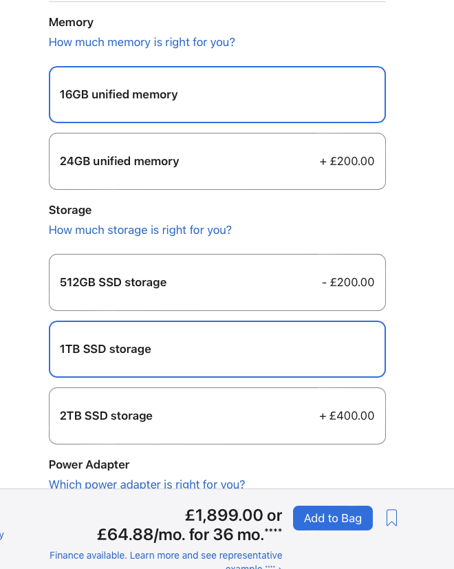 CPU upgrade is free if you're not buying 8/256. It used to cost £100Am I missing something or is the 16GB / 1TB model £100 cheaper at £1,899? I know for a fact the M2 with same specs was £1,999.