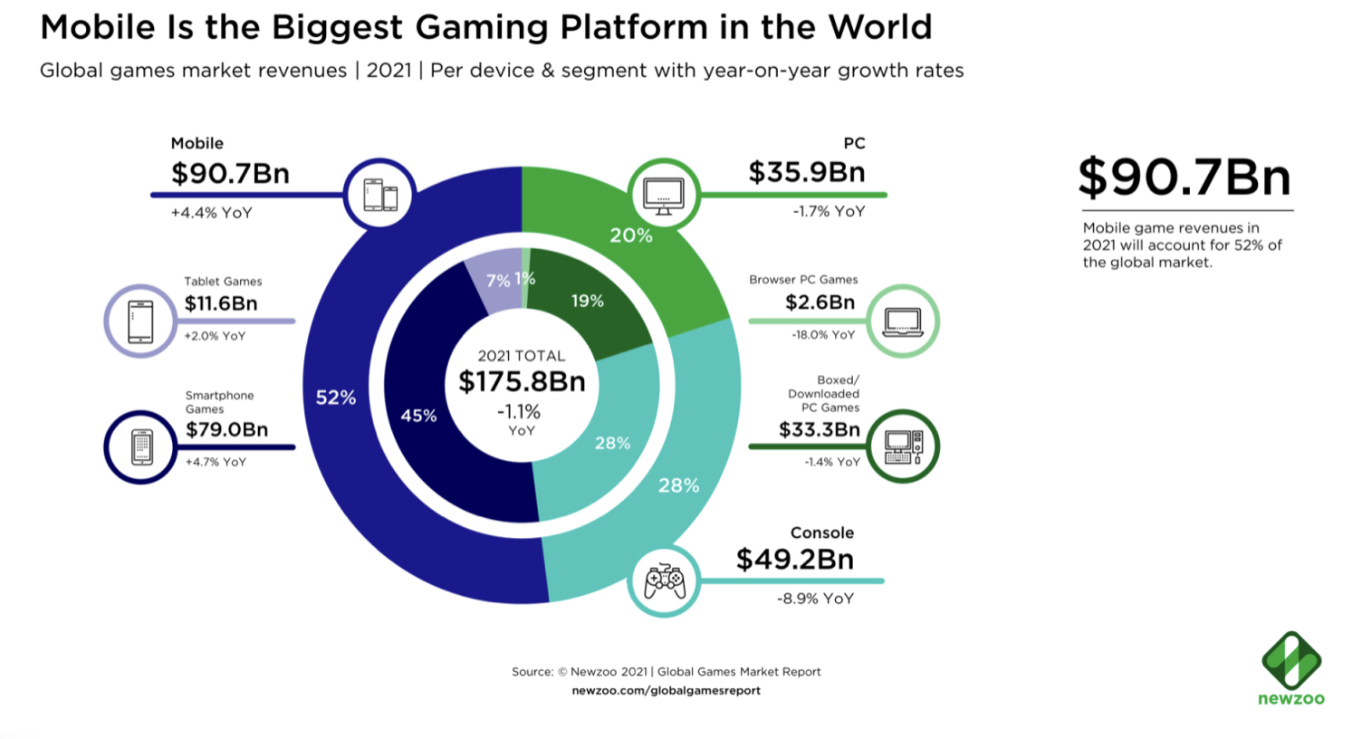 d) The PC market is currently shrinking -1.1% yoy, consoles are down -8.9% vs mobile’s growth at +4.4% yoy.