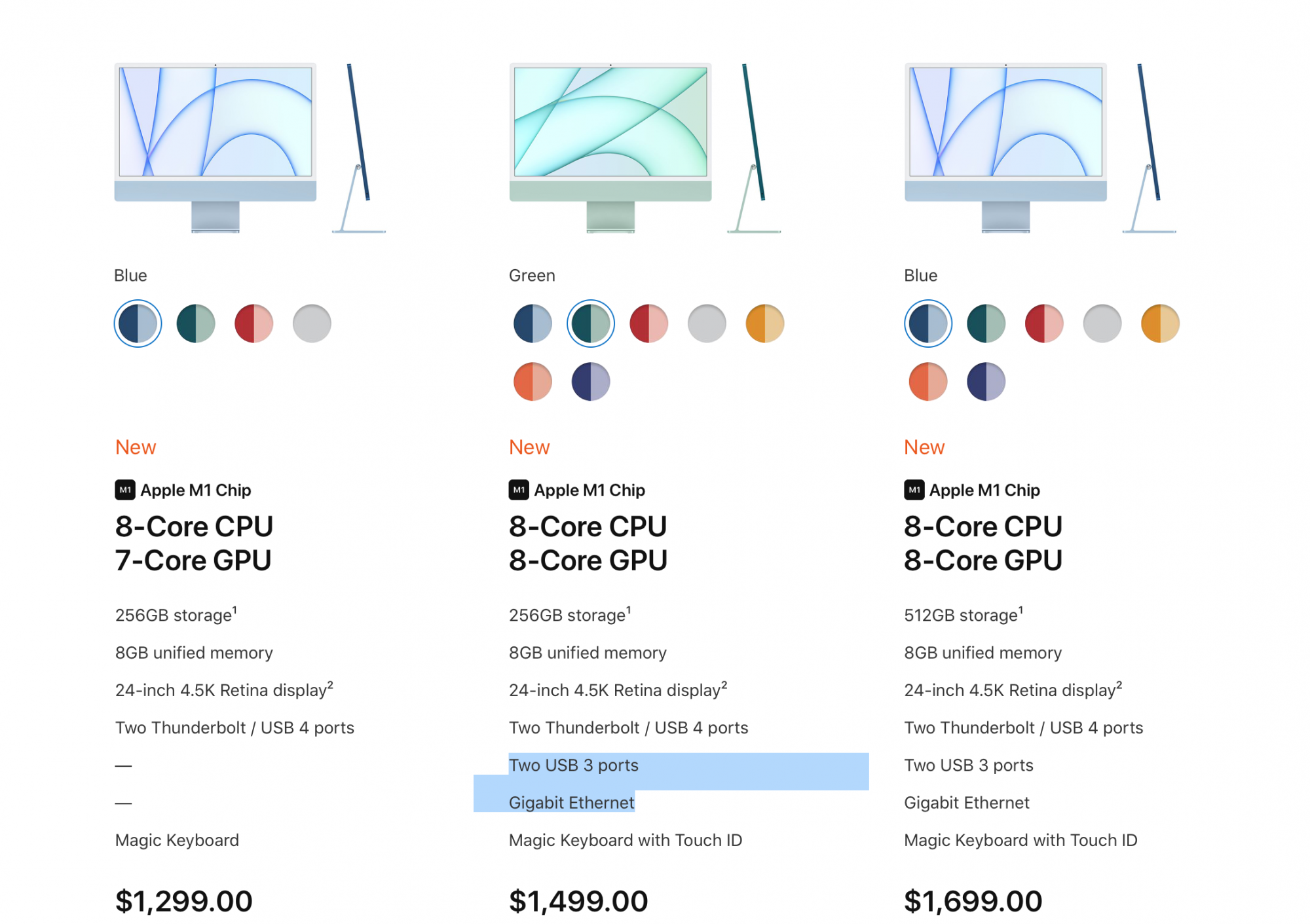 The silly things people keep complaining about all the time. This is an entry level computer targeted at millennials. Once the next generation of M SoC is available we will likely see the bigger version, but probably with only the standard colors. I believe this new entry level iMac will be a commercial success. Well done Apple! Hopefully we will see a new MacBook Pro with M1X or M2 or whoever by.the end of this year.